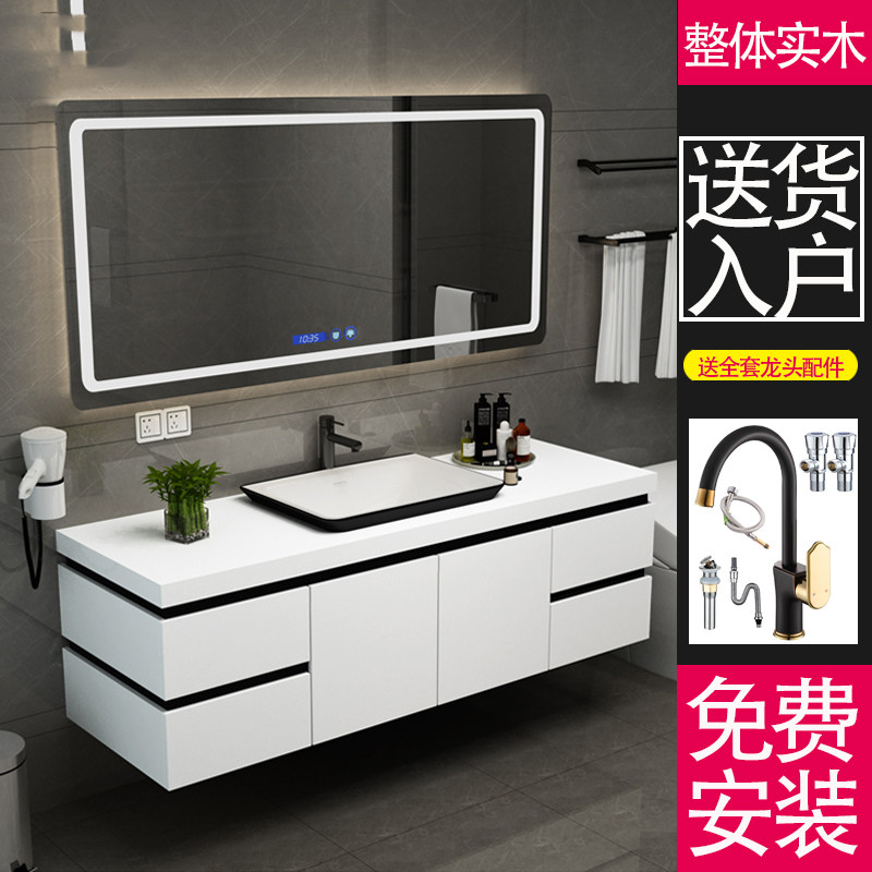 Bathroom set Bathroom cabinet combination Modern simple smart mirror Solid wood Marble Hand washing face wash basin cabinet