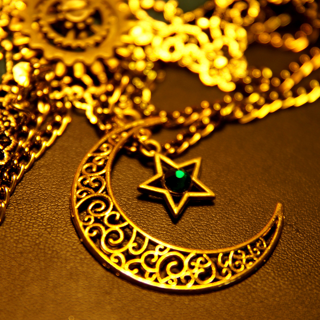 {Steampunk Continent}Steampunk Bronze Gold Moon Pendant Lace choker Neck Ring Neck necklace Necklace