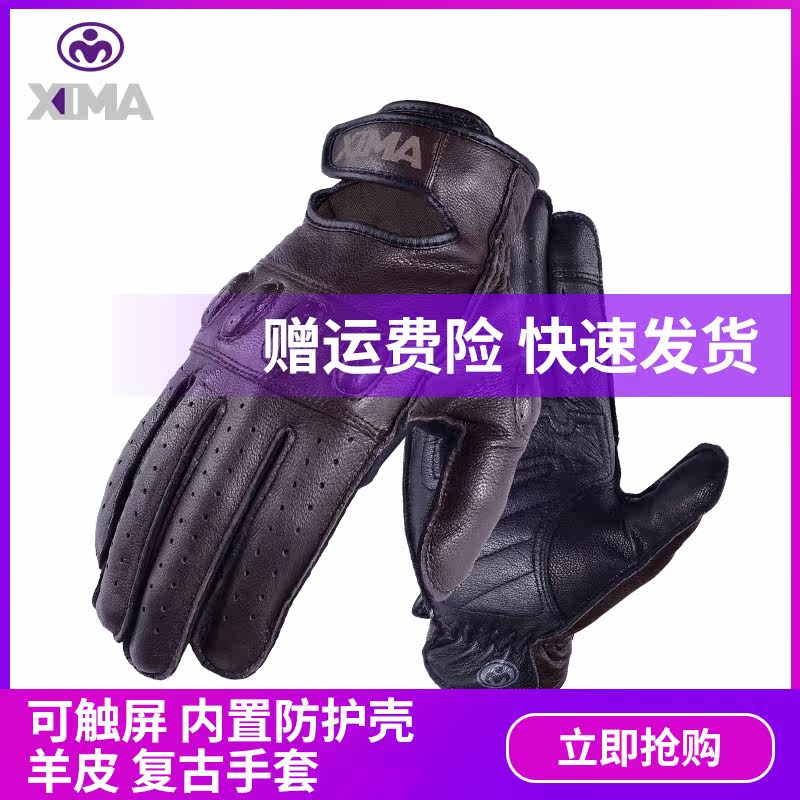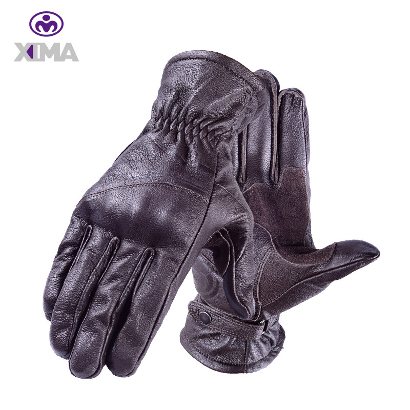 Xima Leather Gloves Men's Winter Cycling Thick Warm Windproof Waterproof Touch Screen Universal Motorcycle Cycling Retro XIMA