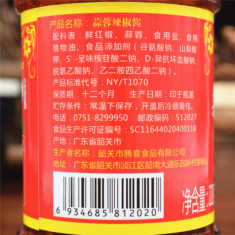5 bottles of Guangdong Shaoguan specialty Ji Shifu Garlic Chili Sauce 228g serving with dipping sauce bibimbap sauce spicy sauce
