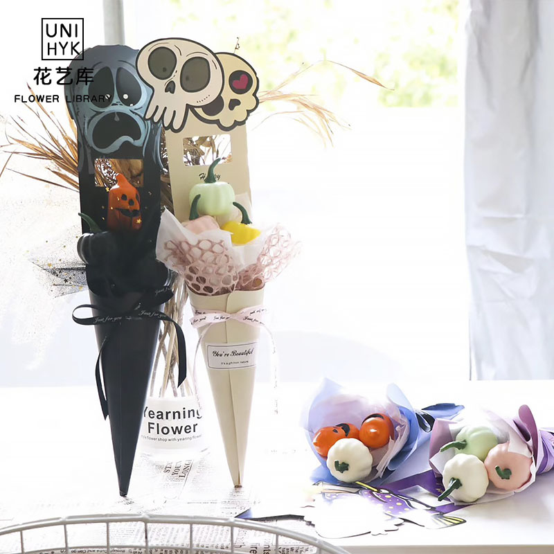 Single rose bouquet packaging bouquet paper Halloween cartoon gift box packaging flower material single flower box empty box