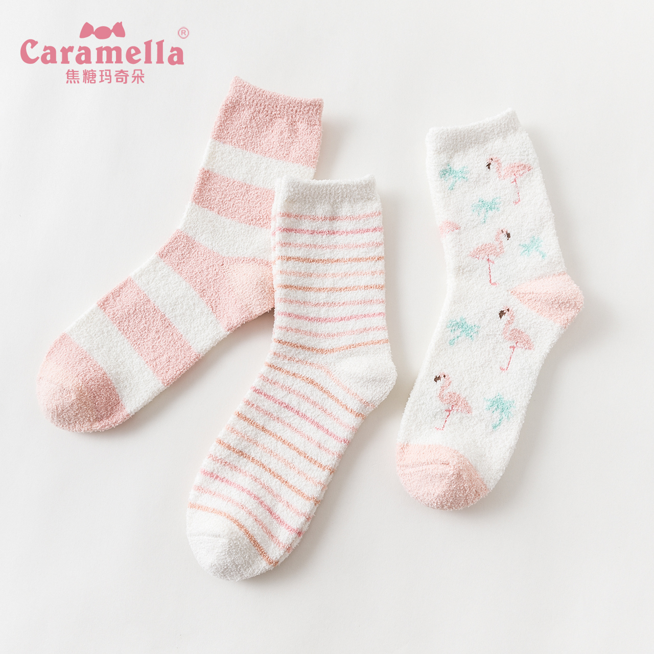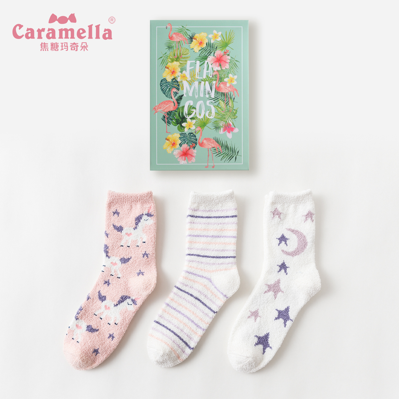 caramella autumn winter socks female midhead Coral Suede Flooring Socks Home Sleep Towel Moon Socks