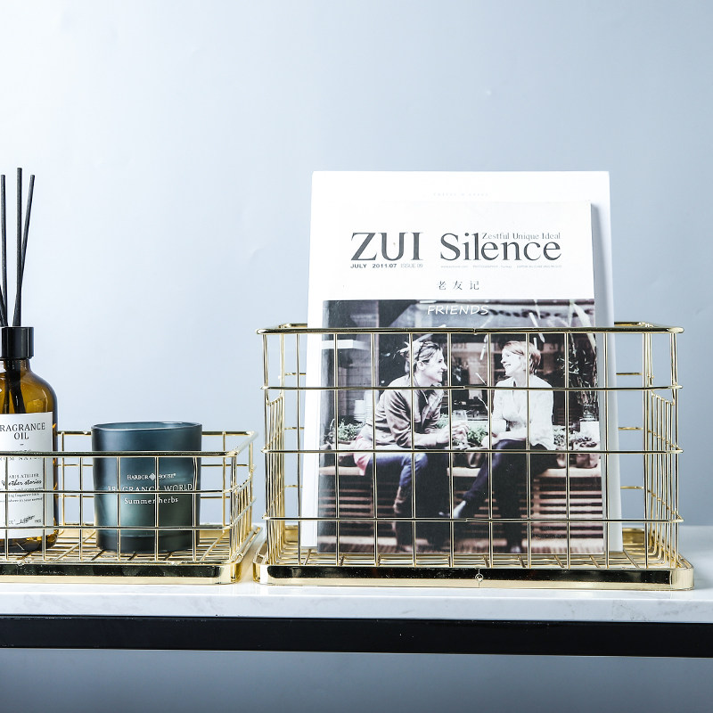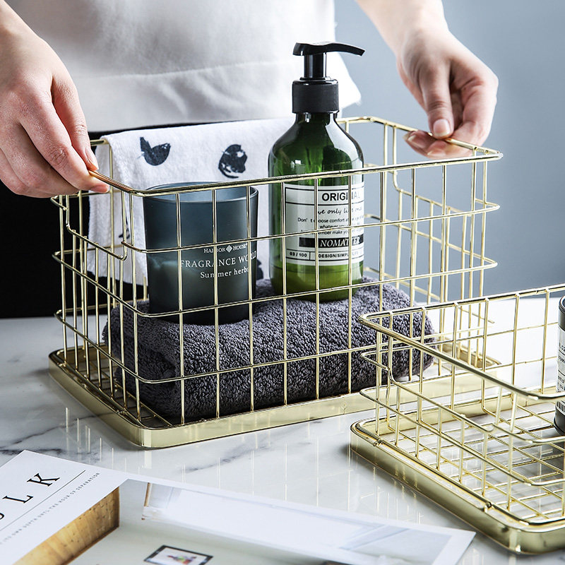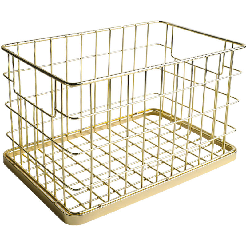 Nordic high-grade metal electroplating wrought iron storage basket storage basket wash cosmetics desktop sundries snack storage basket