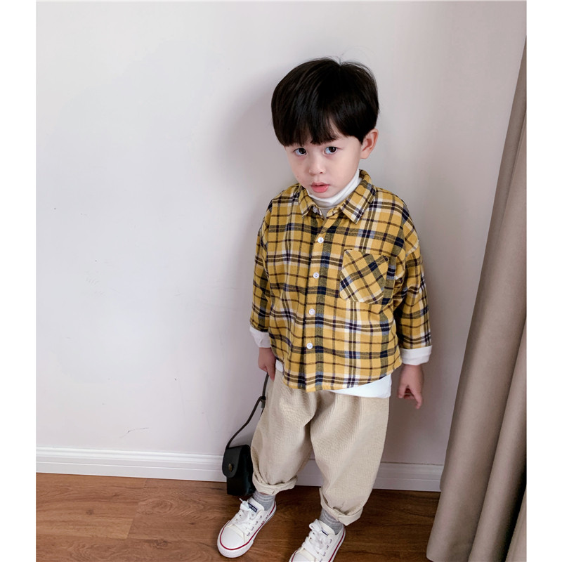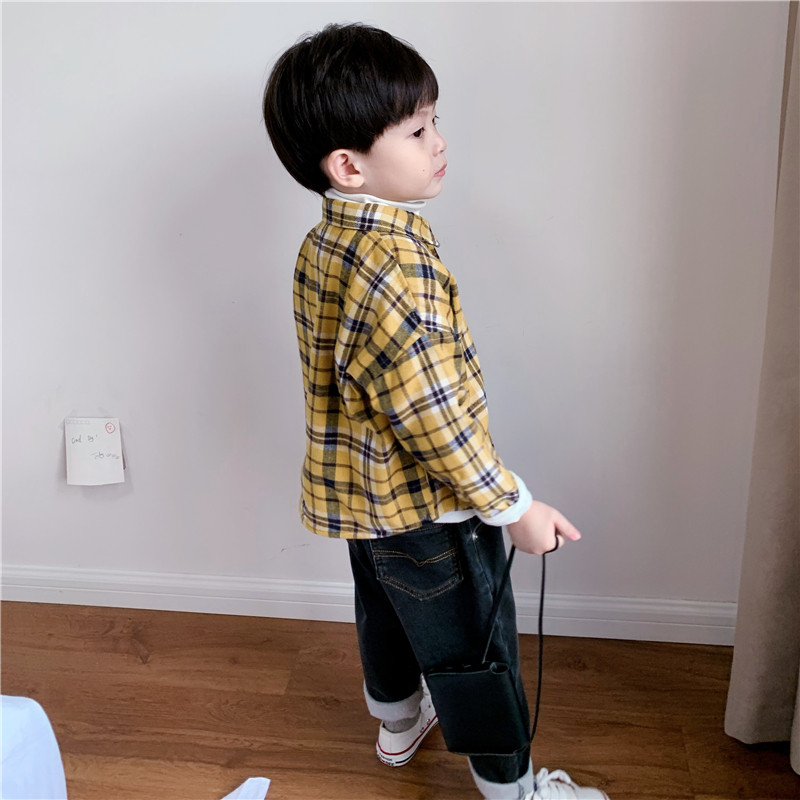 Boy Scouting Boy Grindh Cotton Plaid Gush Shirt Child Gge Blouse Shirt Baby Warm Blouse Cardiovert for winter clothing