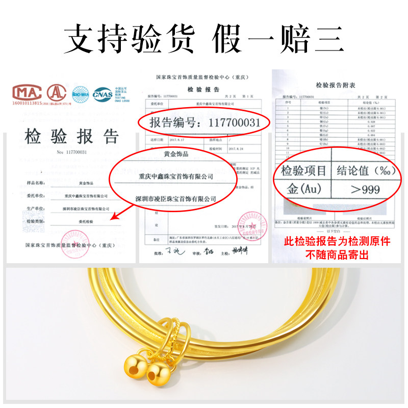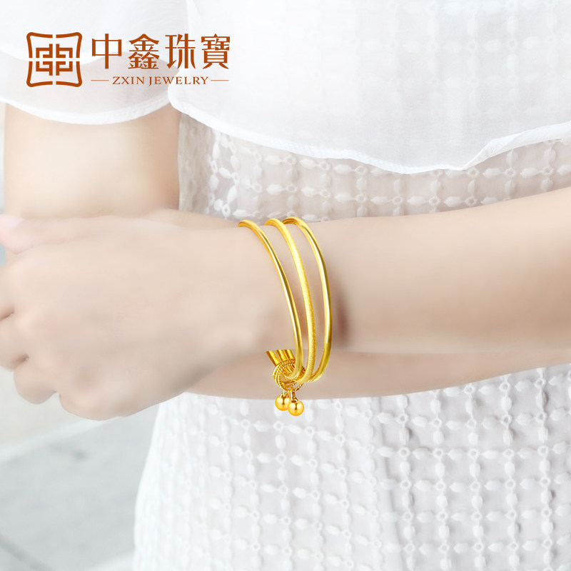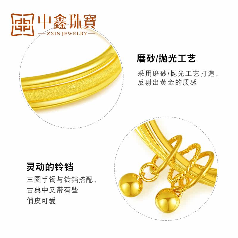 Three lives three gold bracelets female 9999 gold three rings bracelet bell pendant gold bracelet wedding gold jewelry