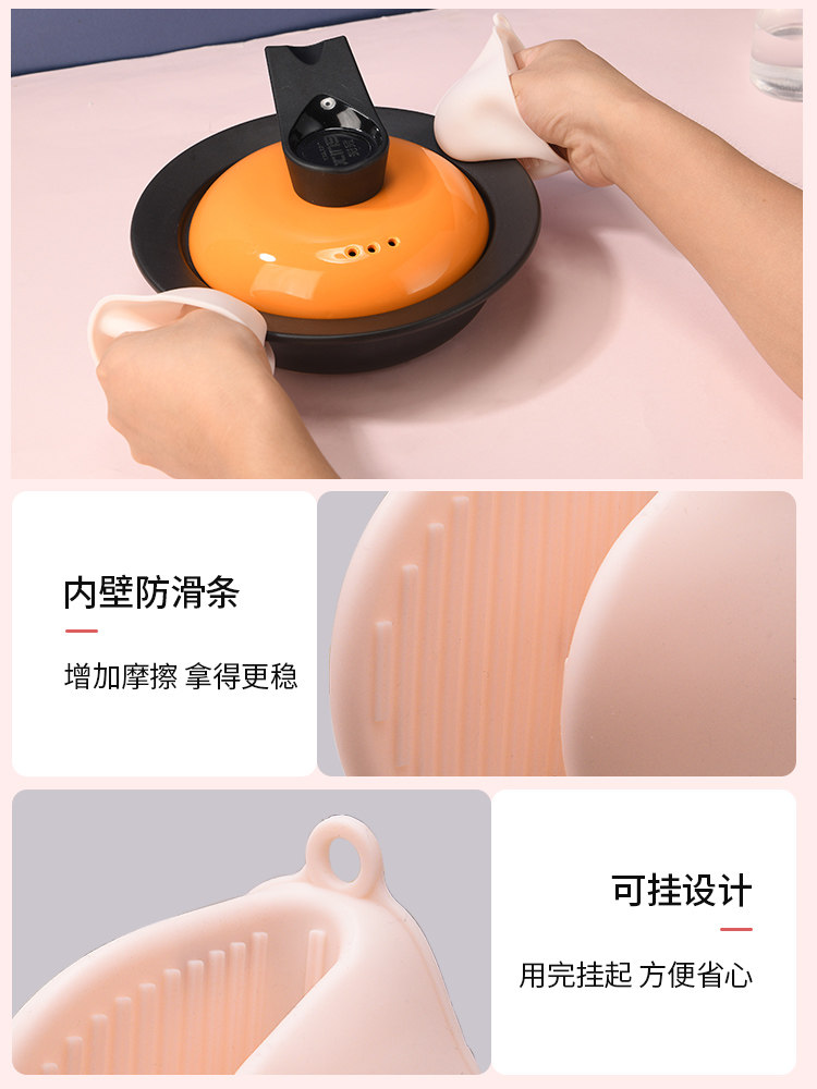 Silicone gloves (one pair) thickening and more hot resistance easy to clean anti-stamping clamping three pieces (dishwasher clip stainless steel clamp)