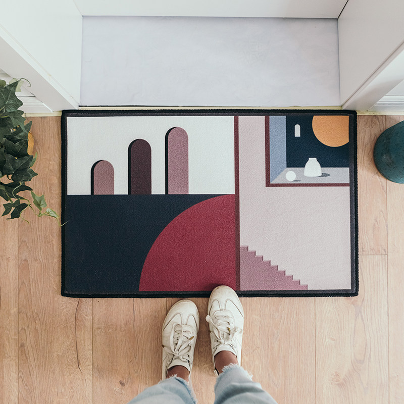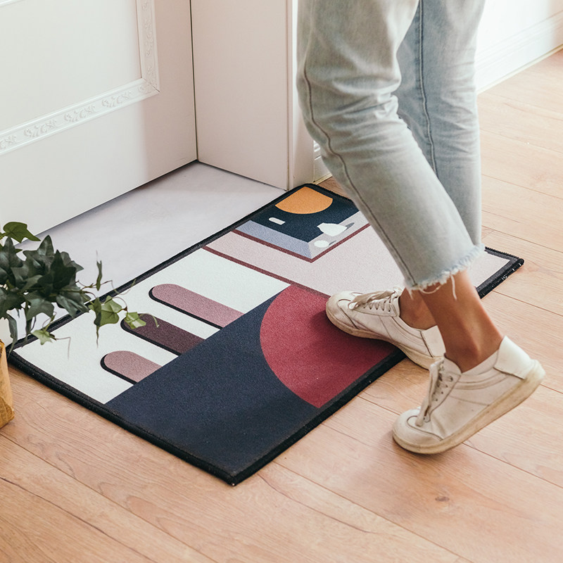 Minimalist geometric introductory ground mat Absorbent Polyester Fiber Suede Face Dust Resistant bedroom into door mat Makeup Room Anti Slip Mat