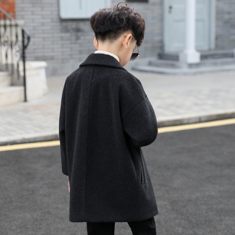 2022 new autumn and winter boy double-row buttoned wool sweater with large coat thickened children capsized in the long version of the fur coat