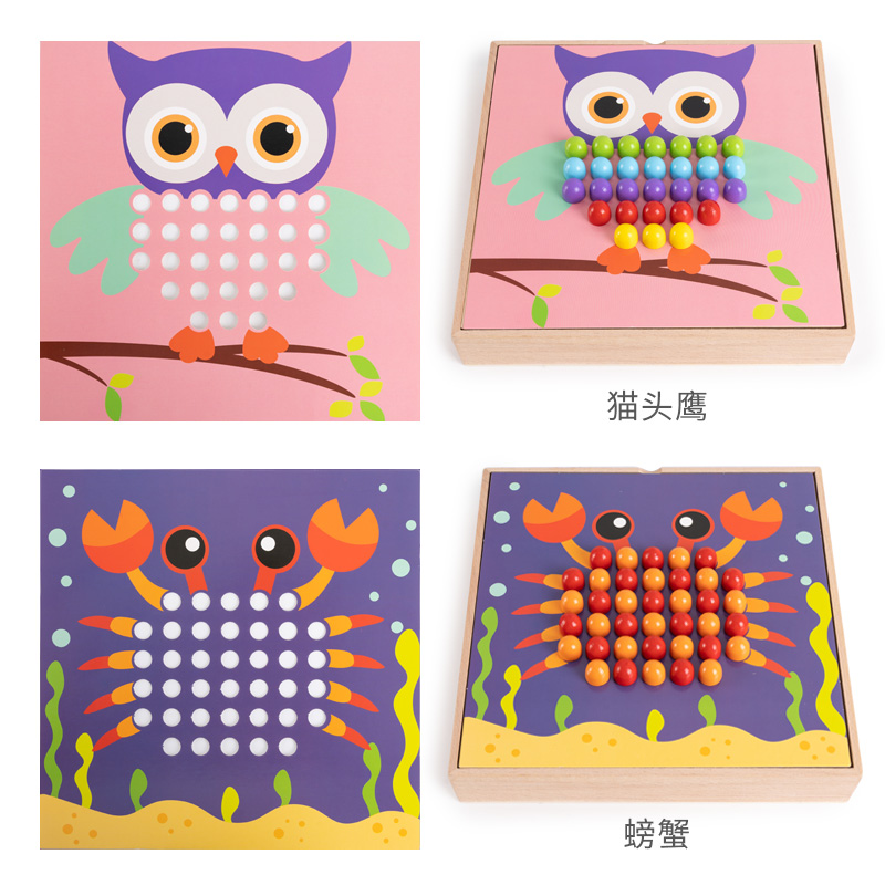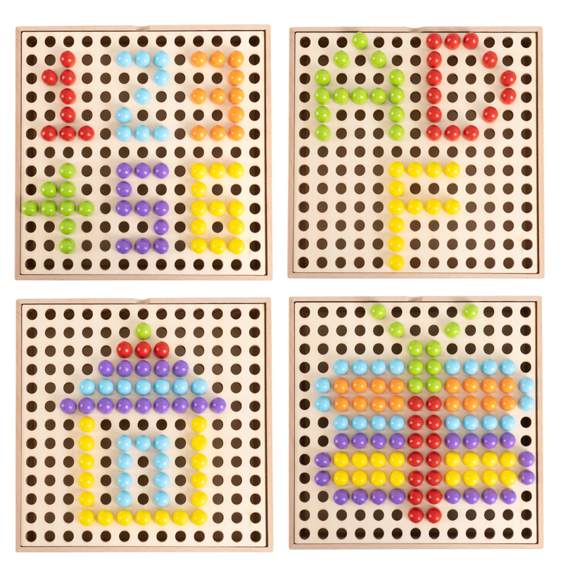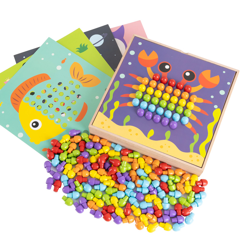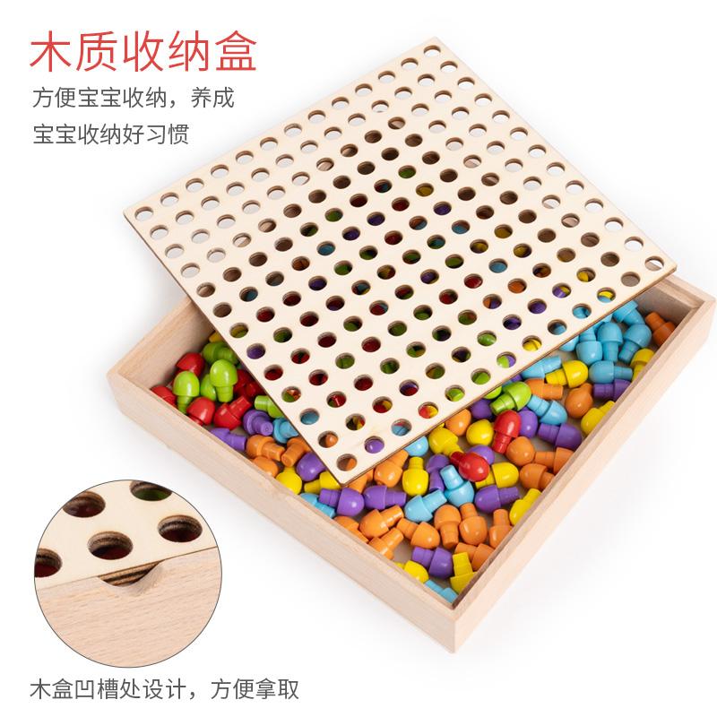 Wooden Seed Mushroom Nails Puzzle Children Early Lessons Intelligence Summer Vacation Toys Big Grain Baby Three-dimensional Monsoon teaching aids
