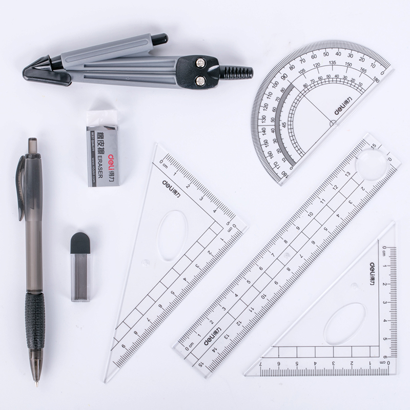Deli compass ruler set Ruler triangle Cute ruler set Ruler drawing tools for students Professional multi-functional machinery Practical metal drawing set Ruler circle drawing tools Instruments