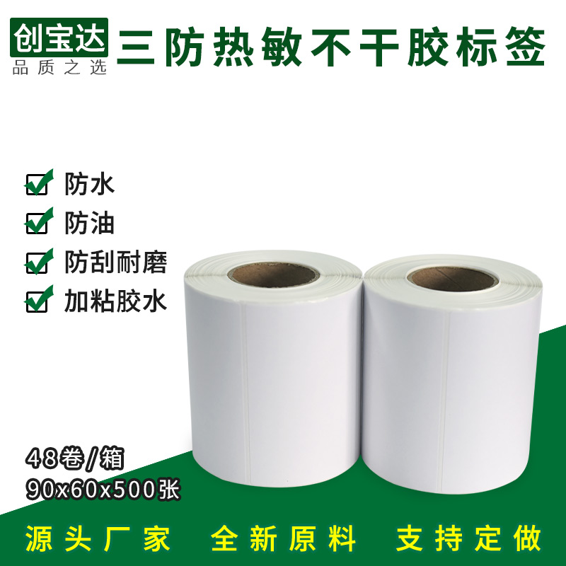 Three anti-thermal self-adhesive label paper 90x60x500 sheets single row logistics label outer box label