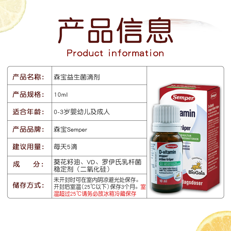 Sweden Semper Senbaoer probiotic drops children Lactobacillus reuteri vitamin VD10ml
