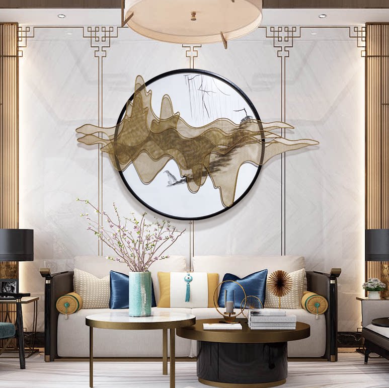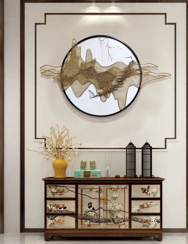 New Chinese style wrought iron landscape porch wall decoration hotel background wall decoration metal creative home living room wall decoration wall hanging