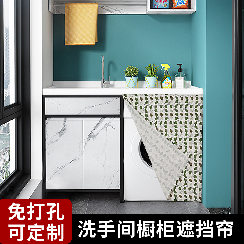 Non-perforated whole cabinet curtain occlusion cloth curtain Self-adhesive velcro shoe cabinet bookcase dustproof kitchen partition door curtain