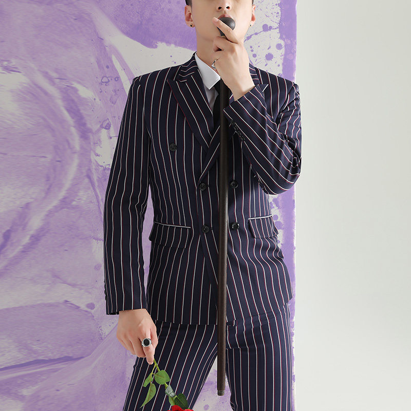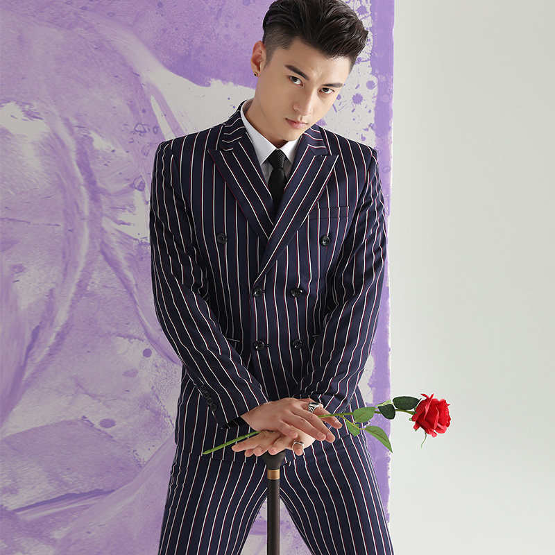 New performance to suit men's suit stripes double-row buttoned photo gallery themed Han version Body Photo Gown Suit Suit Suit