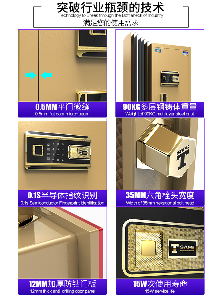 Tiger safe home single door large 1.2 meters 1.5 meters 1.8 meters fingerprint password office file safe all steel anti-theft anti-pry into the wall invisible clip ten thousand boxes custom vault