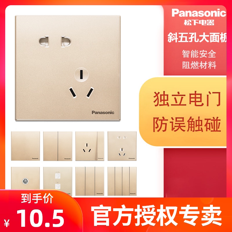 Panasonic switch panel Yuechen golden five-hole one-open single-double-cut three-hole 16A socket usb home wall socket