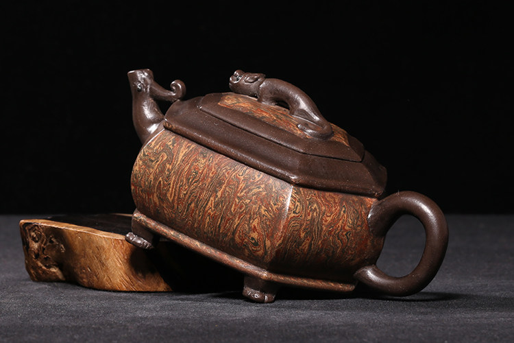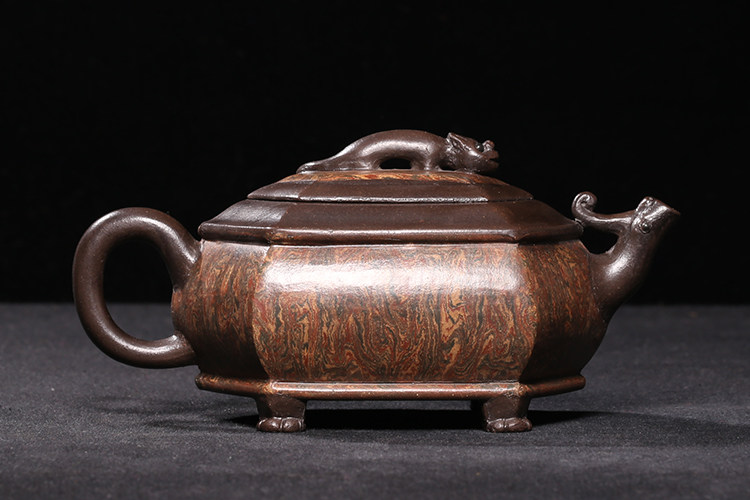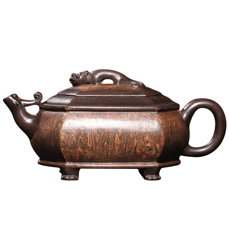 Taiwan return old purple sand pot purple sand factory old pot master Lu Yaochen made wring mud all handmade four-legged dragon pot