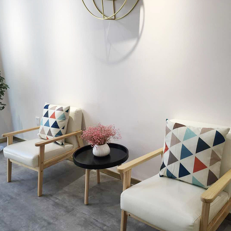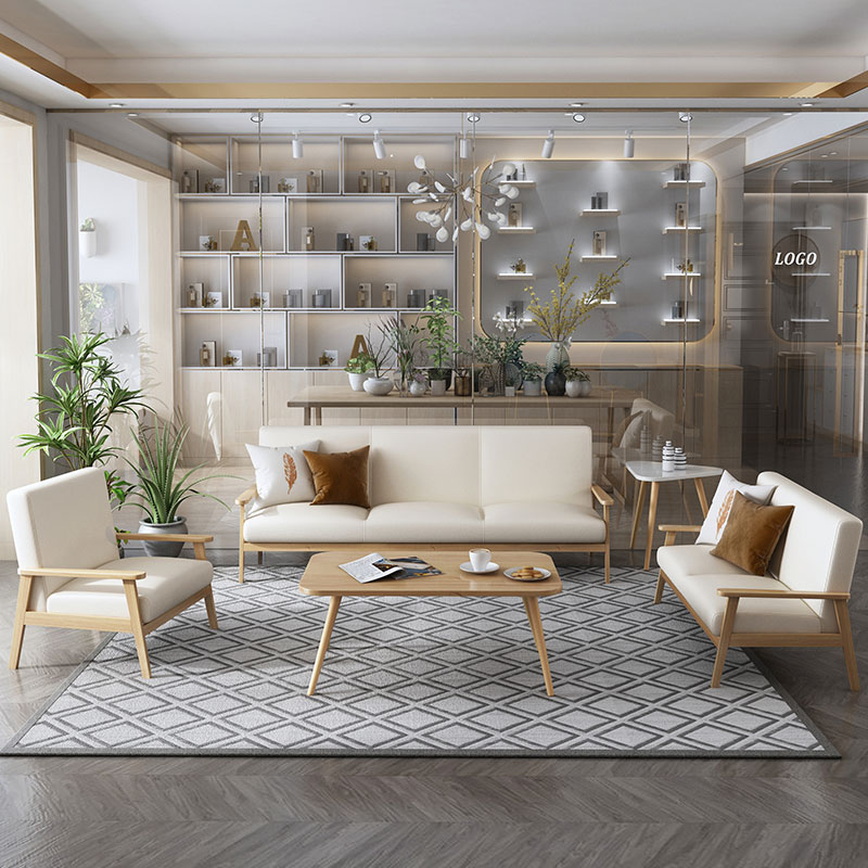 Simple and modern Nordic solid wood sofa office beauty salon sofa reception three-person reception clothing store leather sofa