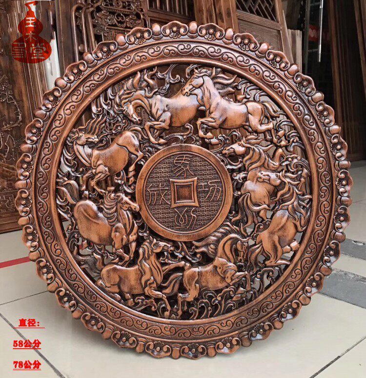 Dongyang wood carving pendant camphor wood carving painting antique like Chinese living room art Fu word bedroom interior decoration