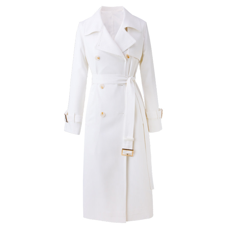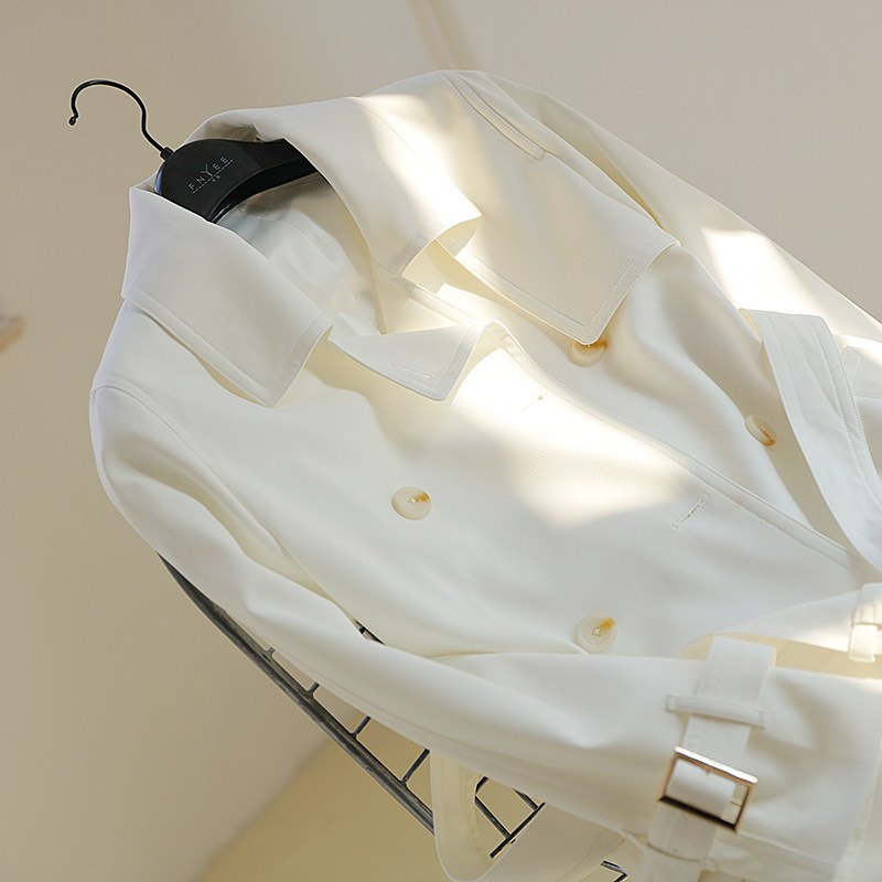 Sanskrit white windsuit woman with long version of knee 2021 autumn new Inn temperament overalls to collect waist jacket woman