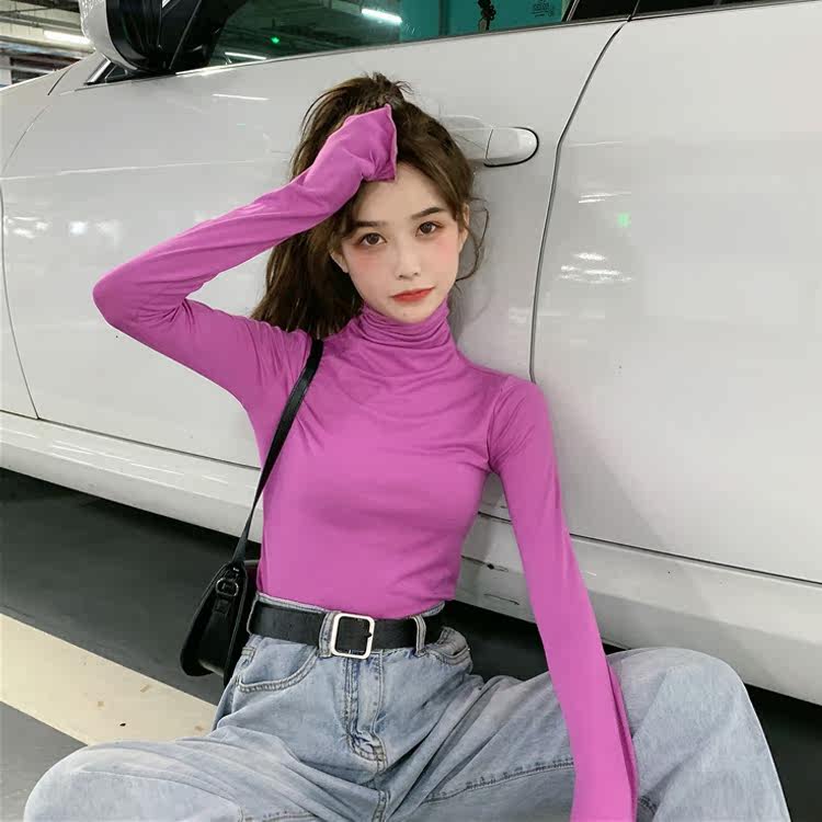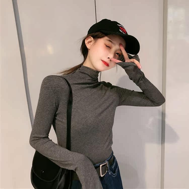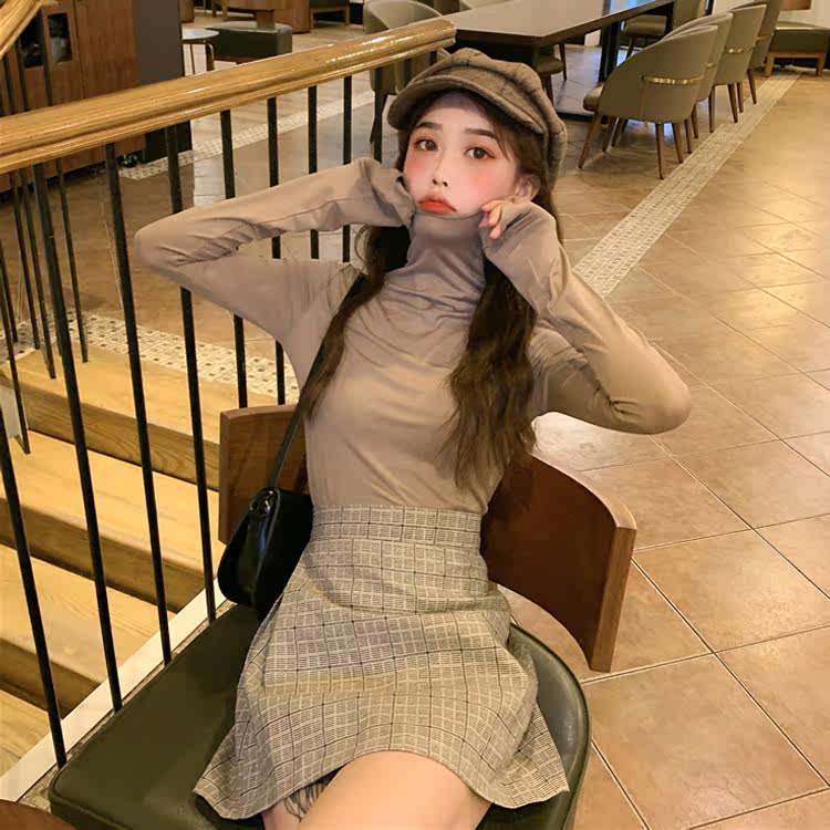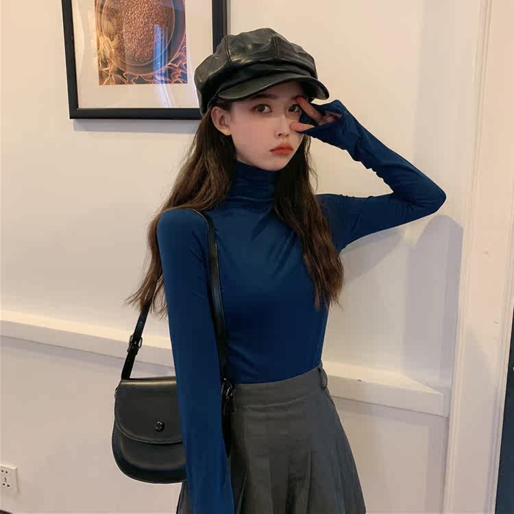 Large size long-sleeved women's clothing 2021 autumn and winter new slim slim Western school in-line top high-neck base shirt women's trend