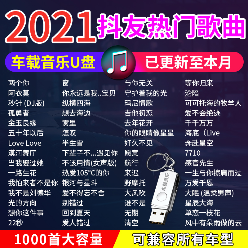 Car Music USB Stick 2021 Hot Pop High Sound Quality MP3 Song Selection New Song High Quality Car U Disk