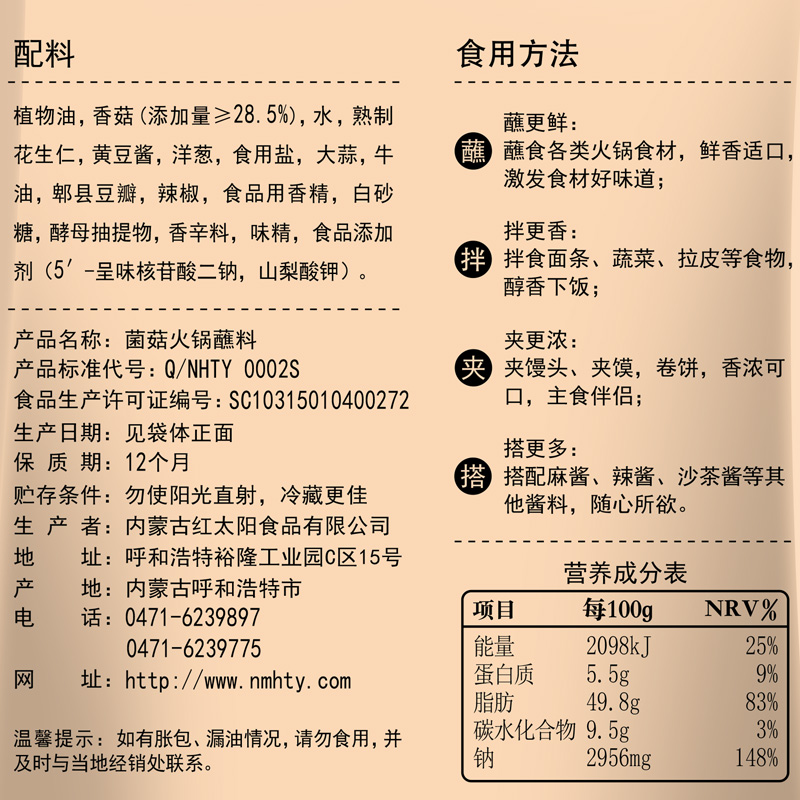 Prairie Red Sun Fungus Mushroom Hot Pot Dip 100g * 5 Home Saw Meals Hot Pot with Sauce Rinds to Rinse Steamed Meat buns