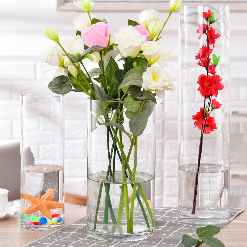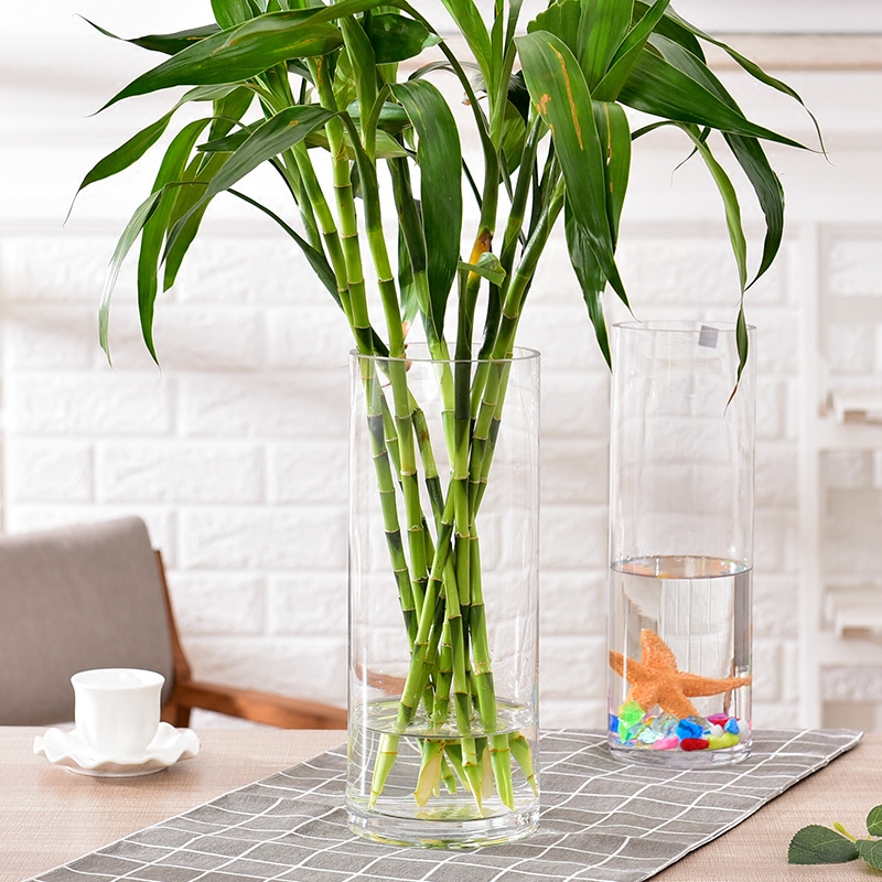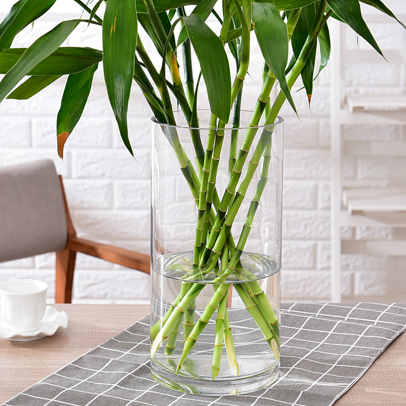 Modern wide mouth special large size hydroponic rich and expensive bamboo vase swing piece glass flower arrangement transparent living room floor home furnishing