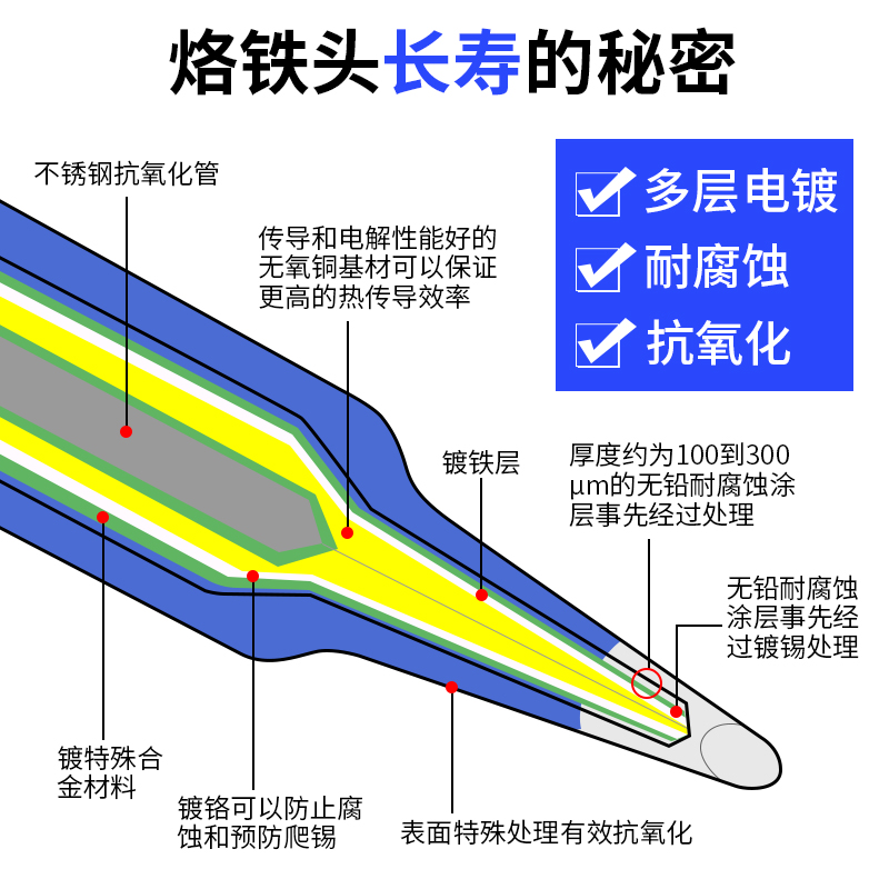Internal heating type 936 soldering iron tip lead-free constant temperature special tip welding tip universal lead-free welding head knife head pointed horseshoe welding tip