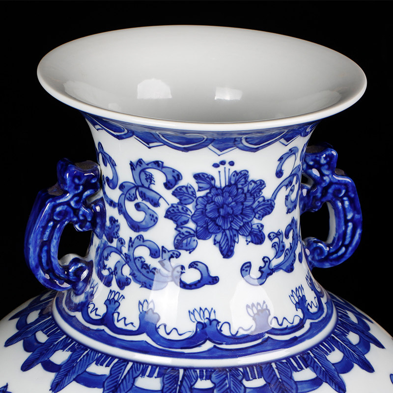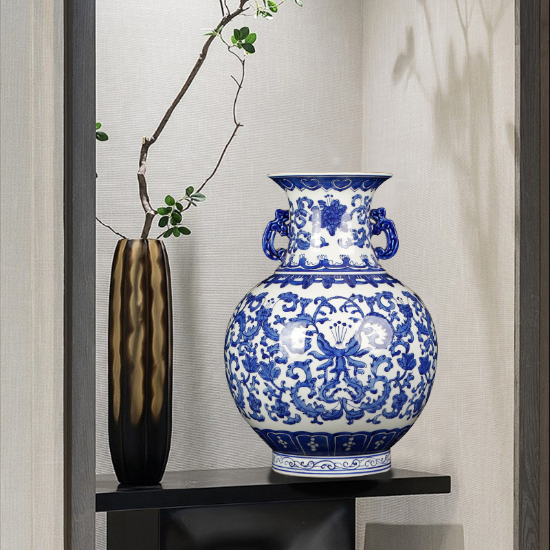Jingdezhen Chinese classical ceramic green flower porcelain tangle branches lotus double ear vase swing piece living room Xuanguan flower arrangement decoration