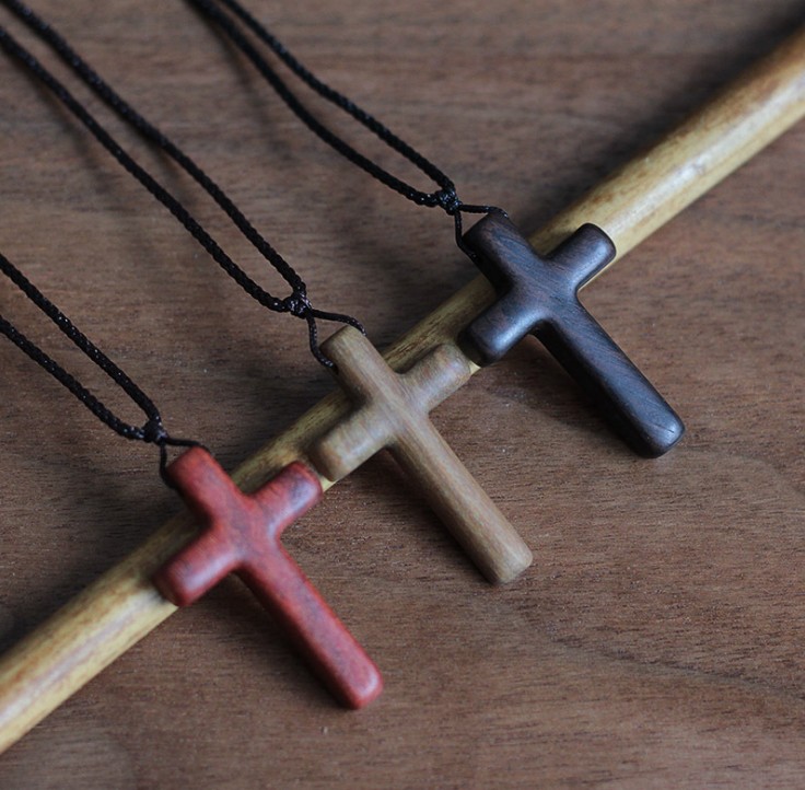 Red sandalwood green sandalwood small and simple jewelry solid wood cross necklace creative leisure sweater chain