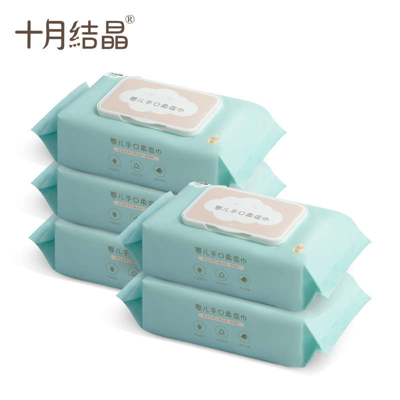 October Crystal baby wet tissue Newborn hand and mouth special fart baby wet tissue for toddlers 80 pumping 10 packs