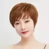 Wig Women's short hair Short straight hair oblique bangs handsome Korean fashion real hair Full headgear natural light hand-woven wig