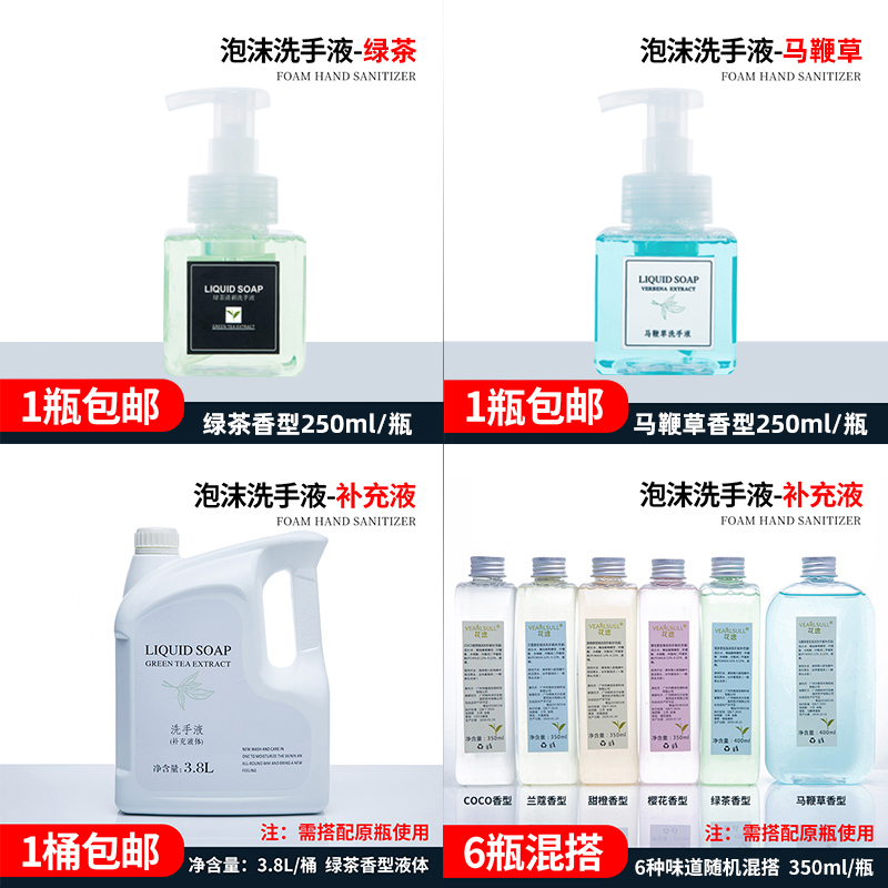 250ml Foam Hand Sanitizer(green tea flavor) 250ml Foam hand Sanitizer (Verbena flavor) 250ml original bottle * Two bottles mix and match (green tea verbena) 3 8L