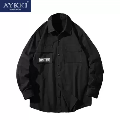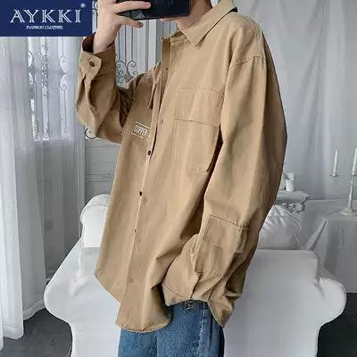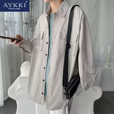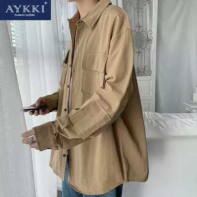 Autumn men's long sleeve shirt Korean version of slim solid color shirt men's casual large size loose tooling coat Tide men's clothing