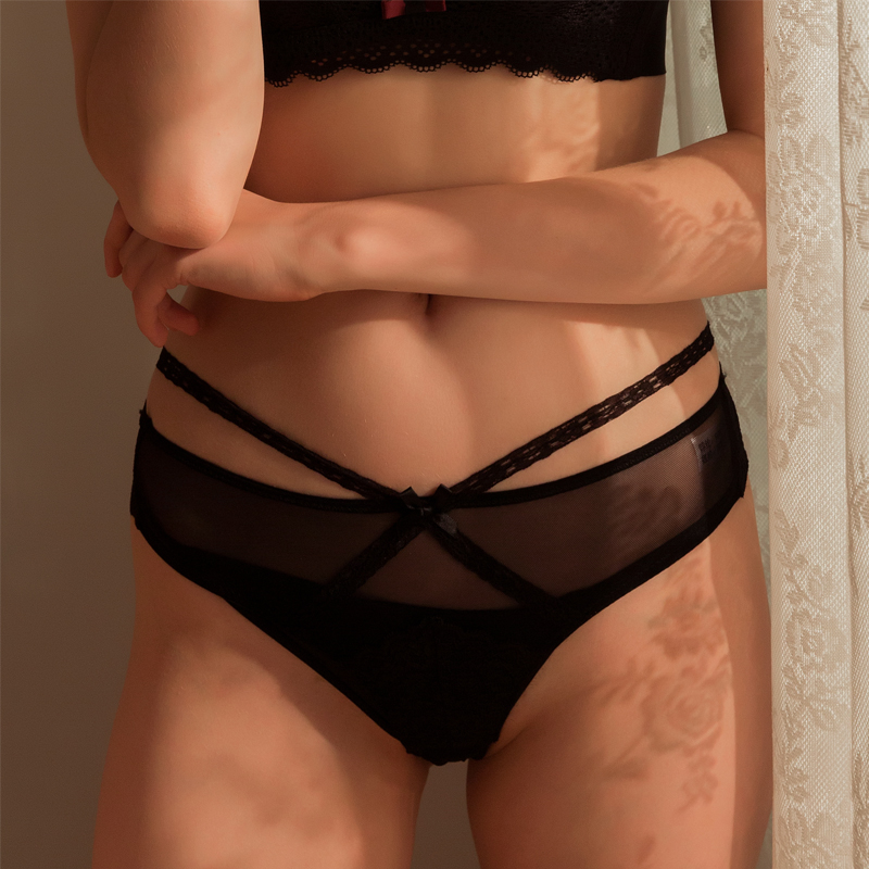 Upper Small Building Sexy Lace Triangle Pants Hollowed-out strap Tiny pants ultra-thin breathable Honey peach hip and hip pants female