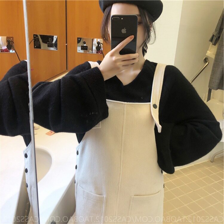 V Collar Loose Sweater Light Core Suede Baby Bag Skirt
