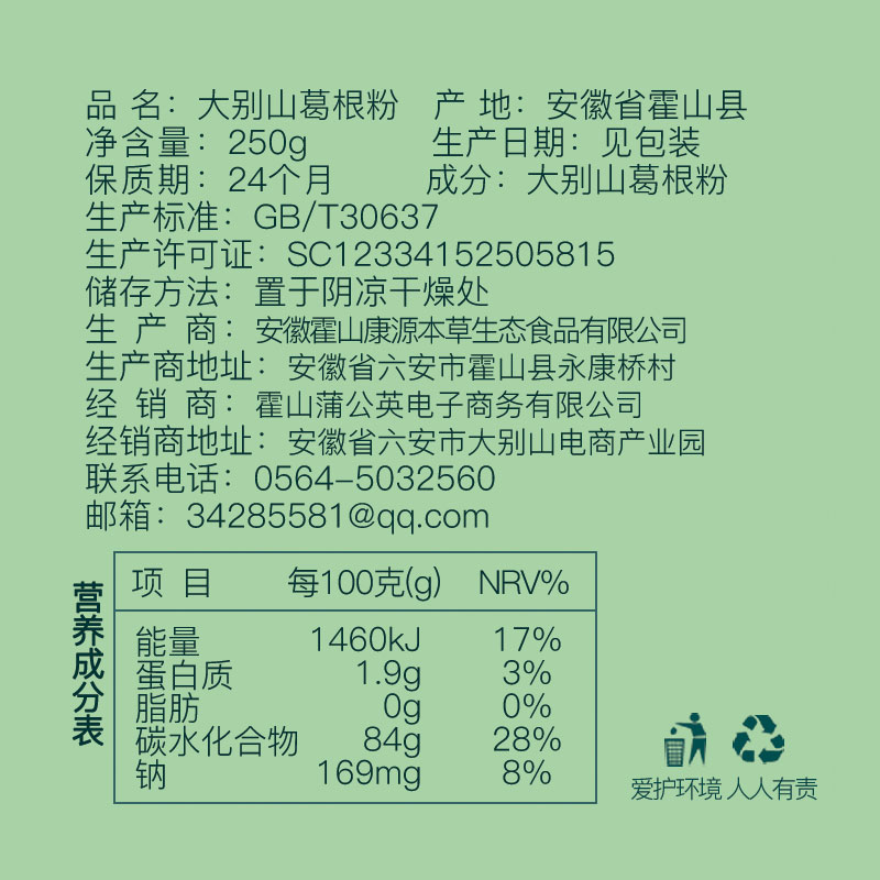 Great Bio Mountain Special production of kudzuvine powder 250g Anhui Hoshan wild growth firewood Gpowder farmhouse tradition to produce a class of products