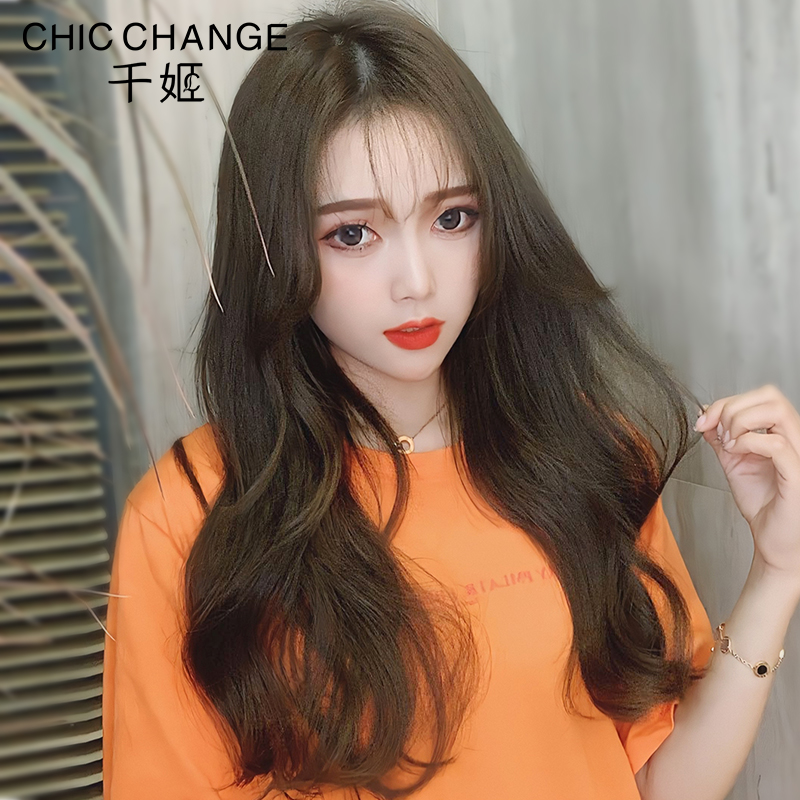 Wig Female long hair Real hair big wave curly hair Full real and fake hair set Female real human hair chemotherapy wig Female long curly hair