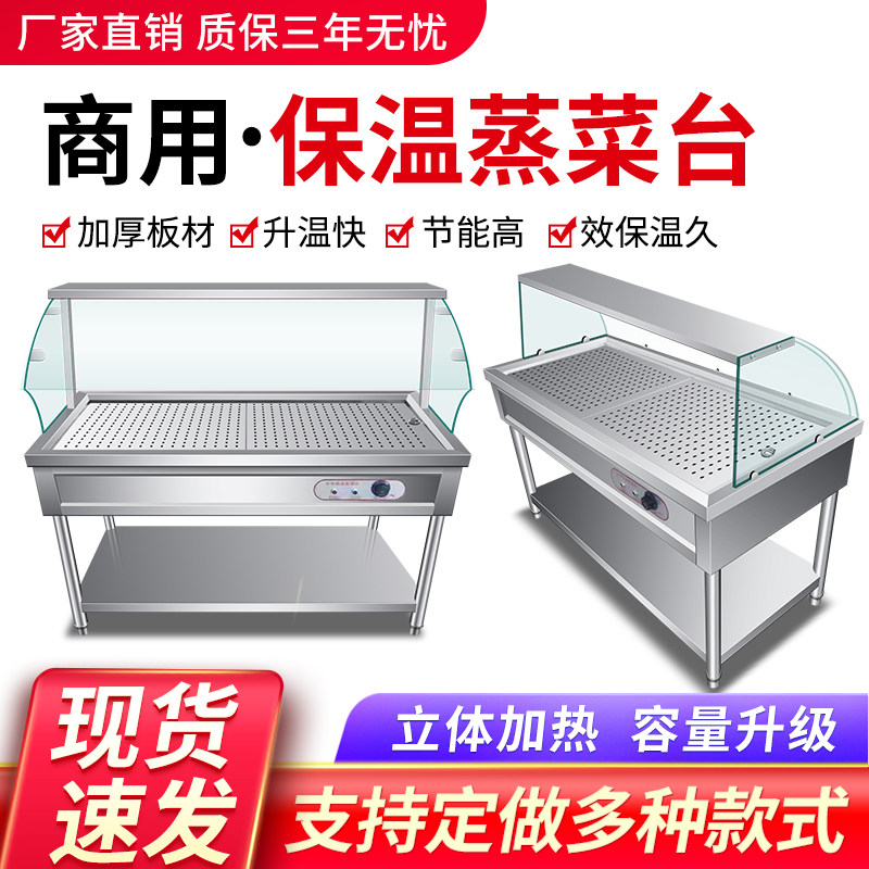 Commercial stainless steel Liuyang insulated steam vegetable table buns steamed buns small dish glass cover vending table fast food insulated table