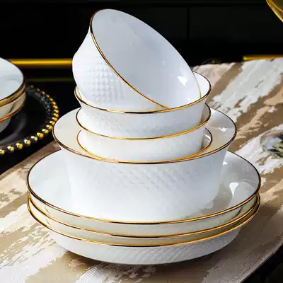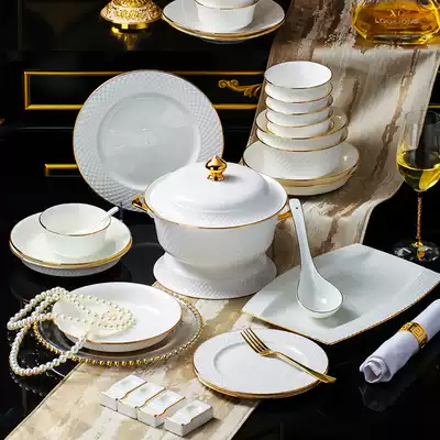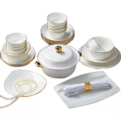 Bowl set Household European simple high-grade light luxury Phnom Penh chopsticks Jingdezhen bone China tableware set Bowl set