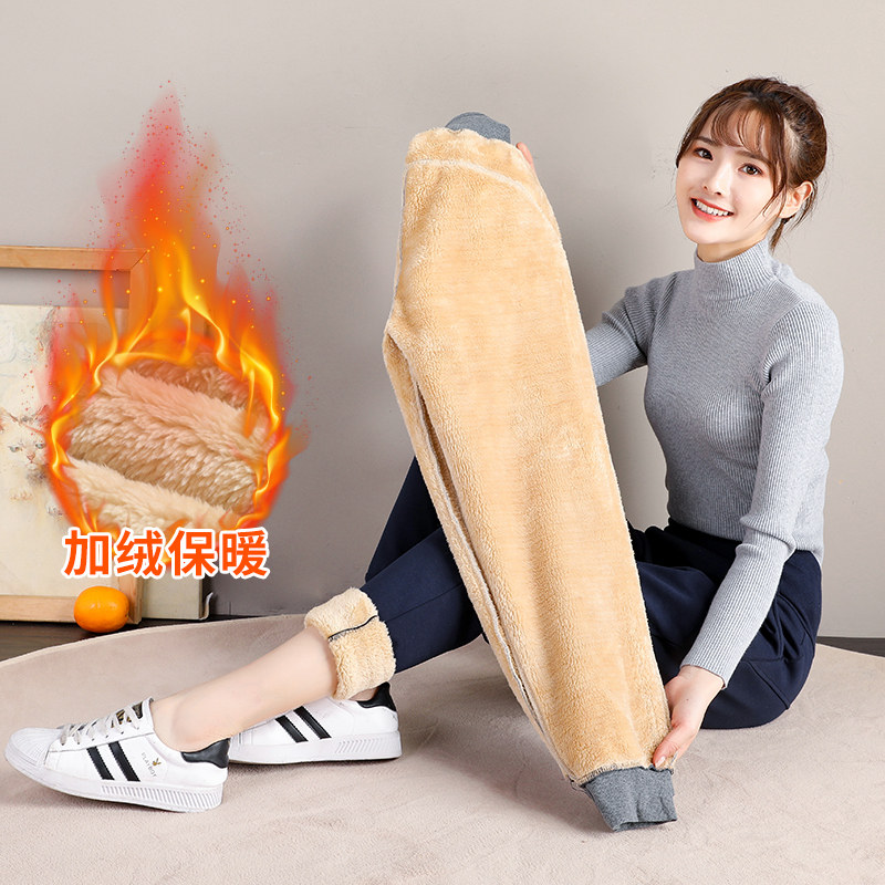 Fleece Thickening Sports Pants Women's High Waist Loose Beamed Feet Autumn and Winter Faux Wool Sherpa Casual Pants Outside Wear Cotton Pants