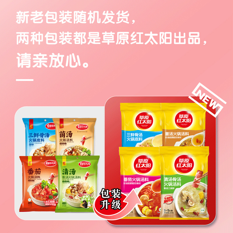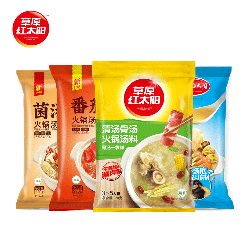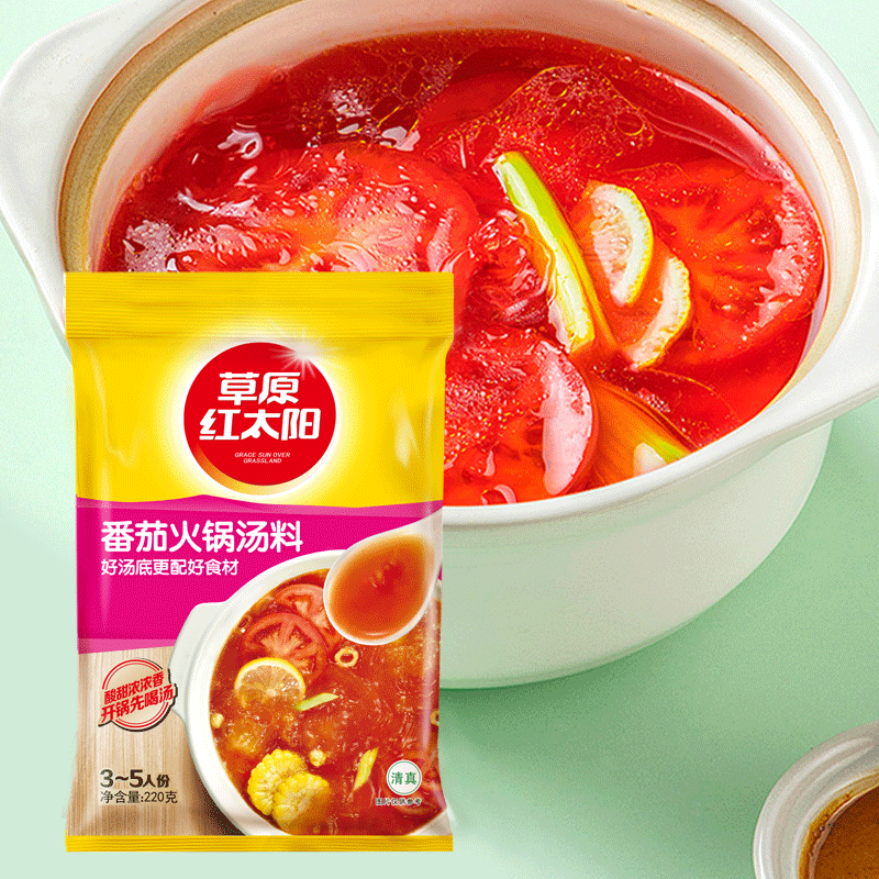 Prairie Red Sun Hotpot Soup Base not spicy 220g * 4 groups of families Home Clear Soup Tomato Seafood Strong soup Small packaging