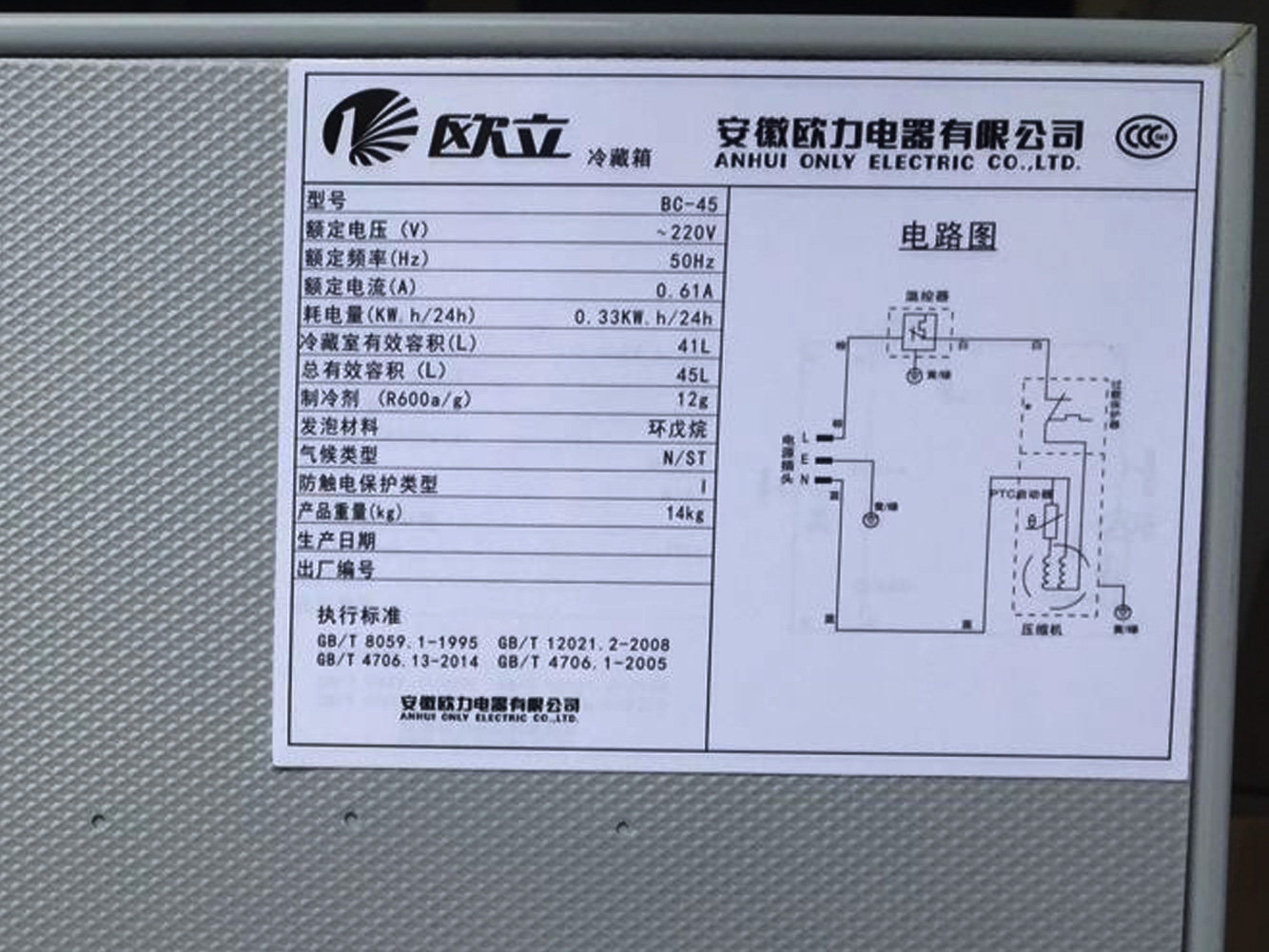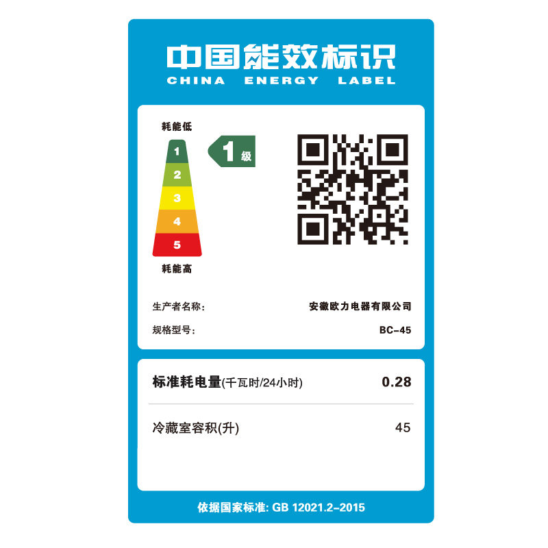 Olu BC-45 Single Door Refrigerated Energy Saving Energy Silent Dormitory Office Fridge Unit School Food Leave-like cabinet