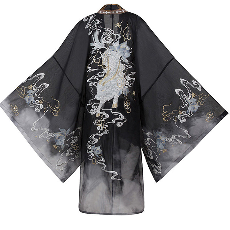 More than thirteen small cardamom child unicorn fantasy dream - small dream joint model] embroidery big sleeve shirt Hanfu men and women's fairy qi