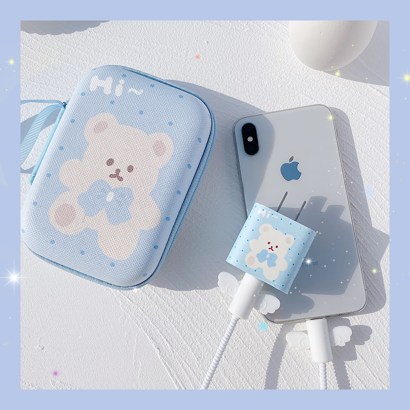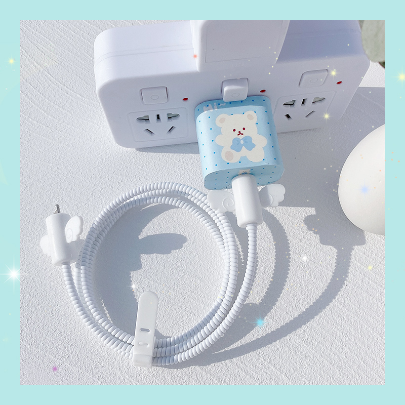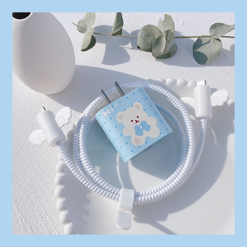 Apple 12 11promax data line protective sleeve mobile phone charger winding rope iPhone 20w 18w headphone winding creative containing box cartoon cute sticker charging head