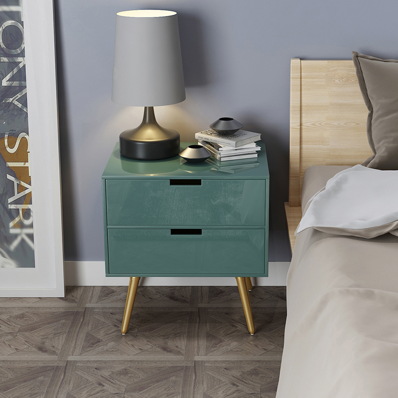 Light luxury Nordic solid wood bed cabinet Small apartment double-layer storage cabinet Simple bed side storage cabinet Bedroom cabinet