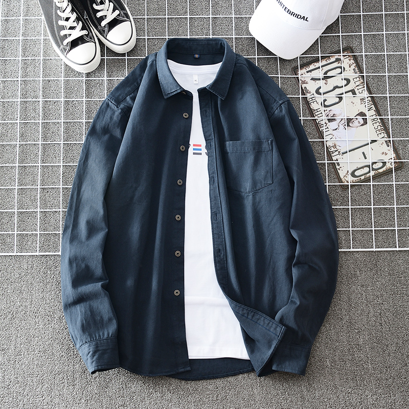 Denim shirt men's large size long-sleeved trendy retro cotton loose fat man plus fat plus fat guy men's spring coat