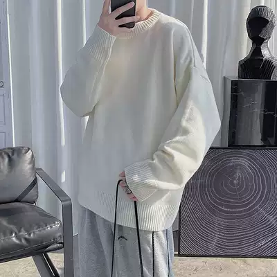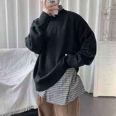 Japanese retro trend falling loose round neck lazy inner sweater men wear gray sweater in winter wear